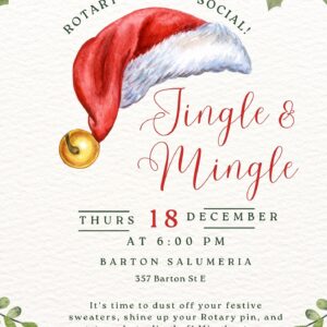 Jingle & Mingle – Rotary Holiday Social It’s time to dust off your festive sweaters, shine up your Rotary pin, and get ready to Jingle & Mingle at our Rotary Holiday Social! Join us for an evening of: 🥂 Cheerful conversation and good laughs 🎶 Holiday music and relaxed mingling 🍽️ Tasty treats and seasonal refreshments 📸 Photo-worthy moments with […]