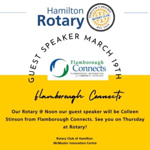 Rotary @ Noon will welcome Colleen Stinson from Flamborough Connects, an organization devoted to supporting individuals and families through community connection, essential needs programs, and compassionate outreach. Members will hear how Flamborough Connects delivers practical help and human support across the community — from food and basic needs assistance to coordinated social services — ensuring […]